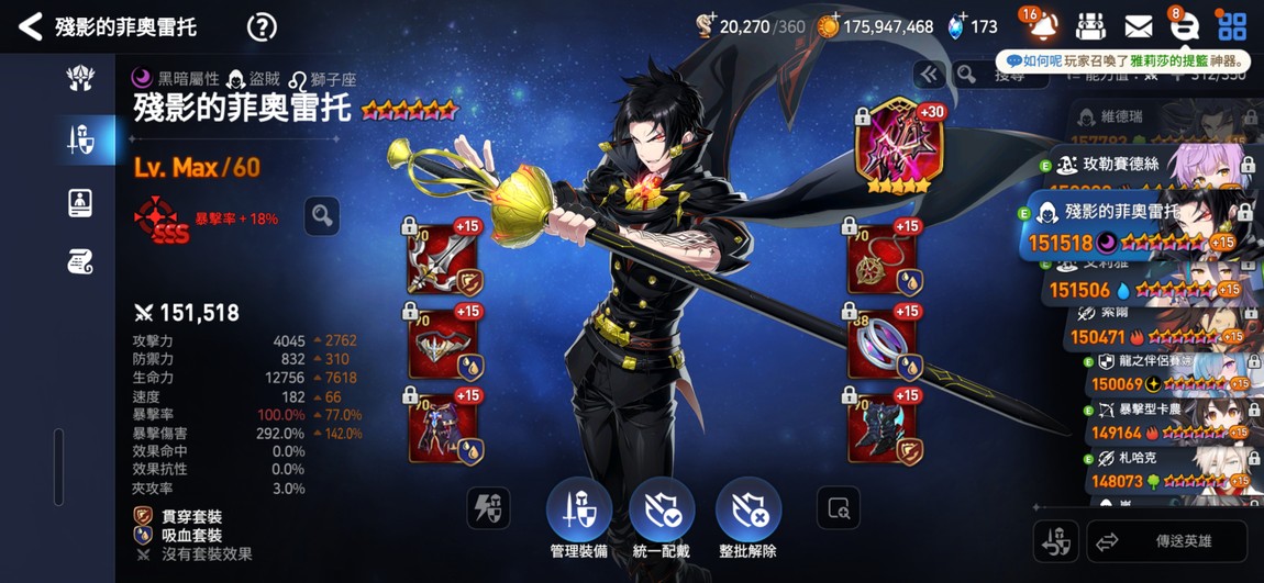 附圖是尚未獲得的角色、神器及頂速,其他有想看的資訊都可詢問