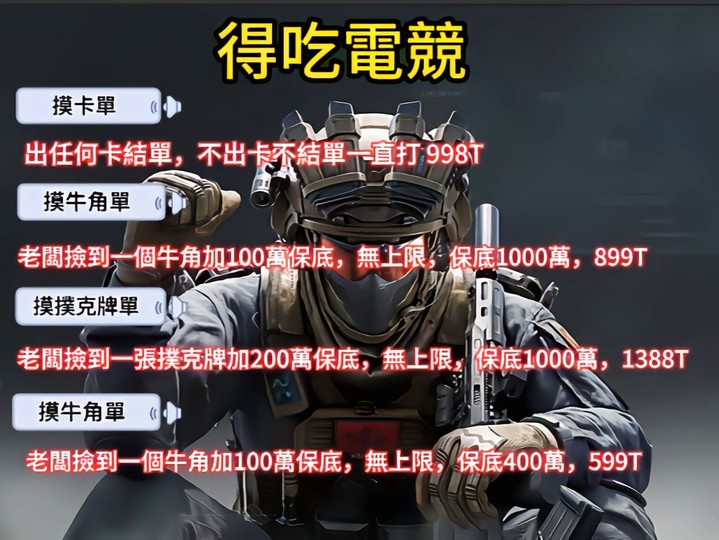 2.老閶死亡為炸單卡戰備入局機密炸-把+20萬保底絕密炸-把+60萬保底監獄加80萬保底