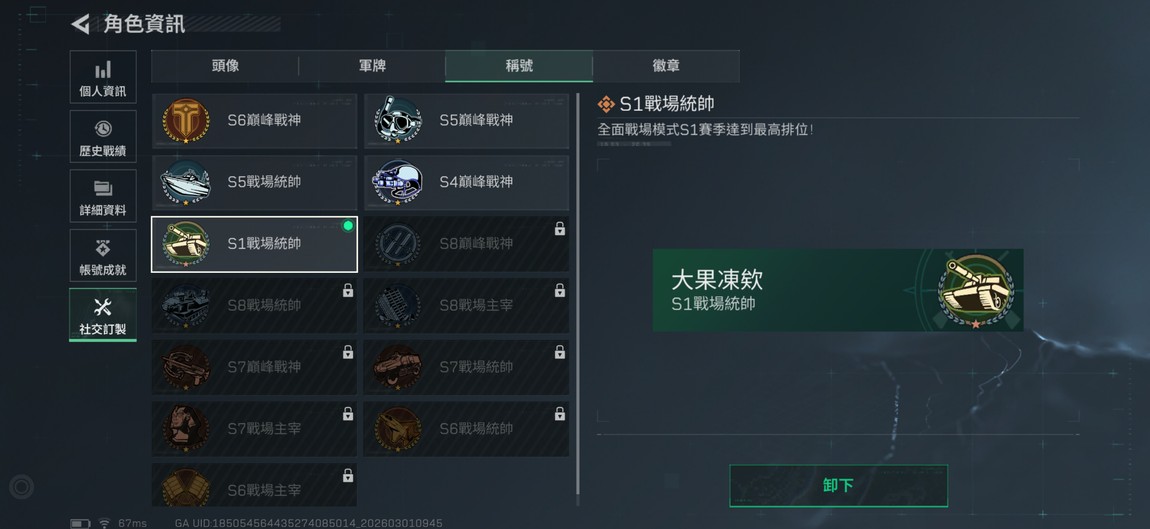 【Garena帳】頂帳 多磚皮全金皮