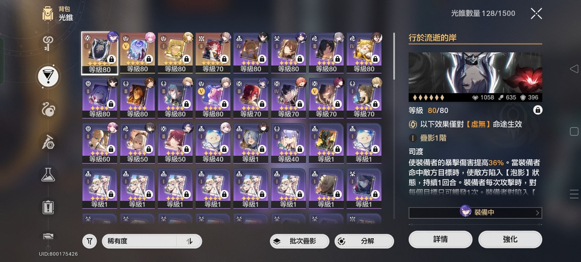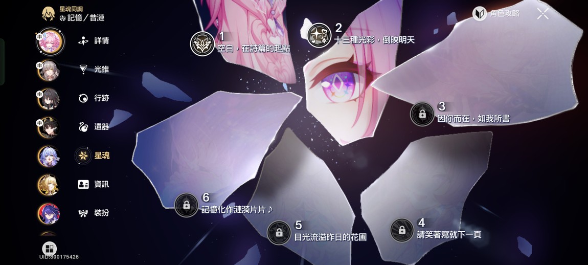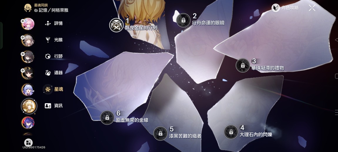【女、70等、15金角、3金專】2+0昔漣、1+1阿格萊雅、0+1黃泉、0+0知更鳥、0+0符玄、0+0羅剎