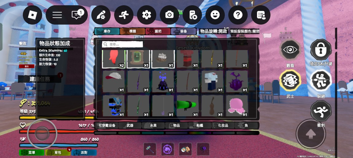 補充:有雙倍錢 雙倍經驗 雙倍掉落 還有快船 跟果實探測器