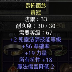 S13 死靈法師 寶冠 2技能 19力量 18全抗