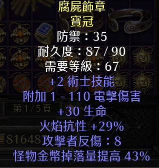 S13 術士 寶冠 2技能 抗性 電傷