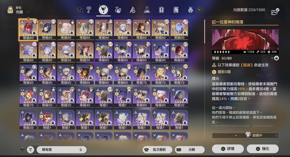 輔助:忘歸人00 爻光01 知更鳥01 花火11 阮梅20 記憶主65