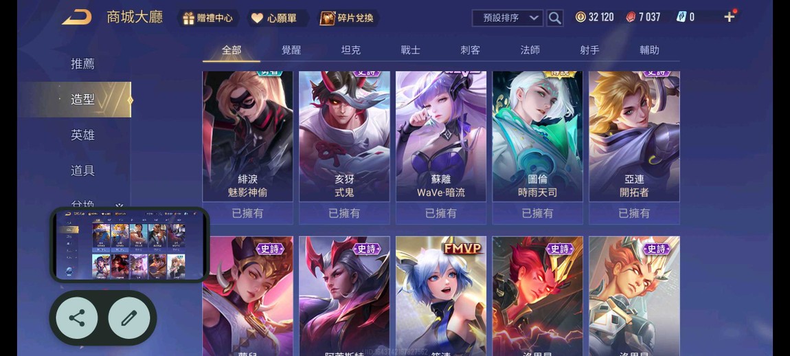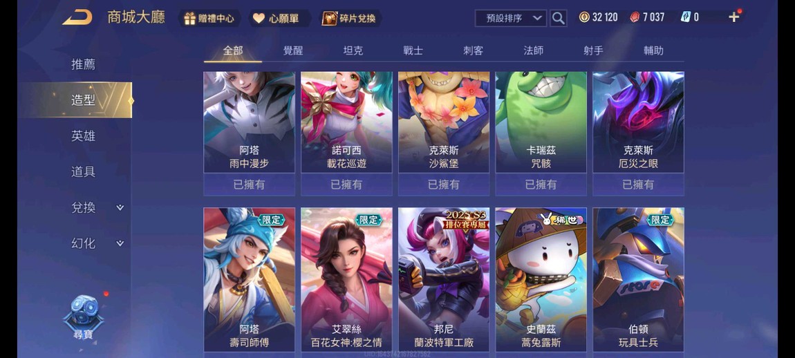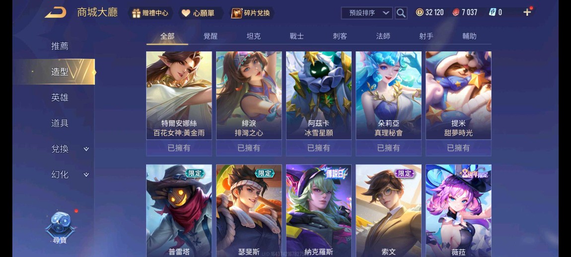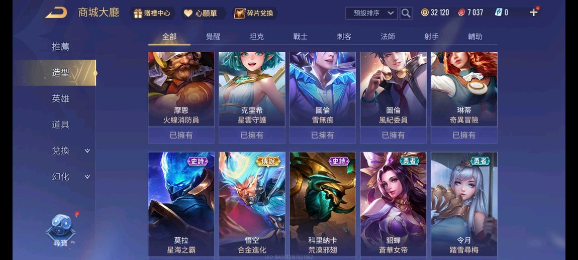 【Garena帳無綁無連、先鋒傳說·光影、V6、105英、179造】估價用