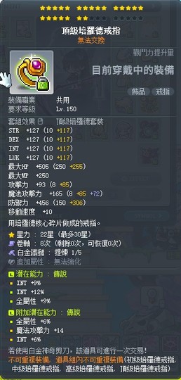 【頂級培羅德戒指】22C雙傳33%智附加12智頂鍊 白1全B捲