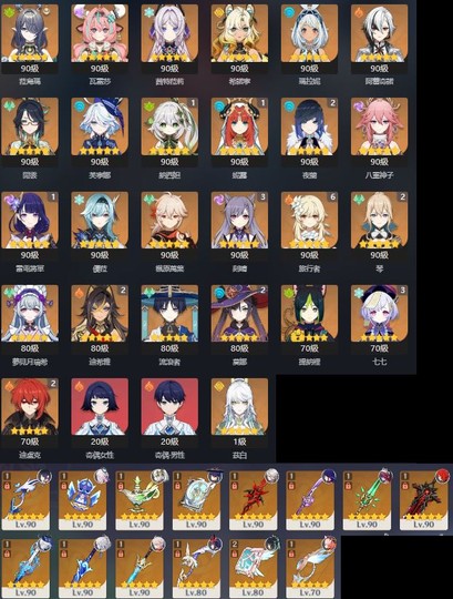 【女、60等、28金角、14金武】62金_茲白_C2夜蘭專_C1草神專_莤特菈莉專_水神專_已畢業_可議價