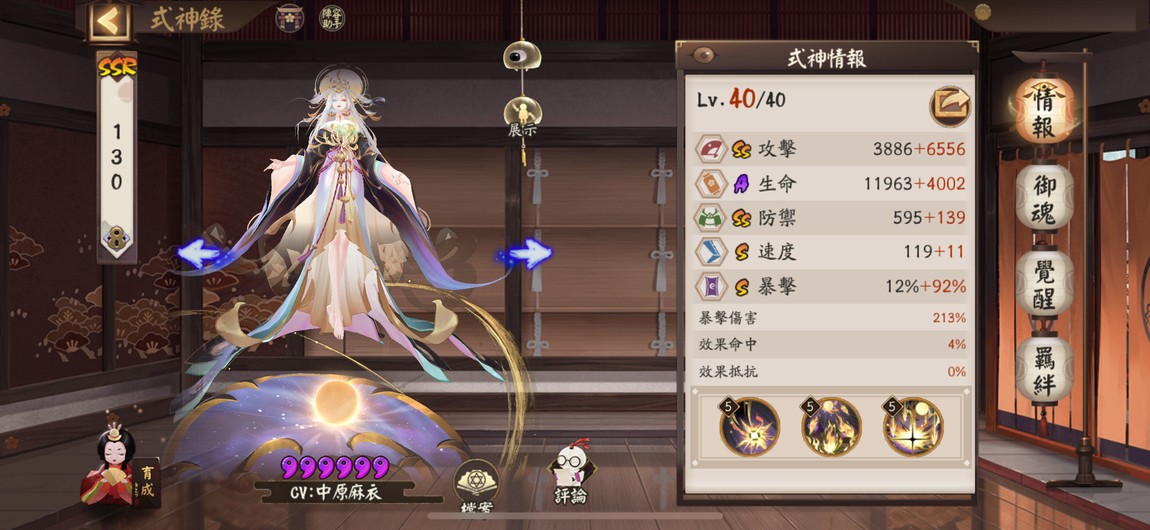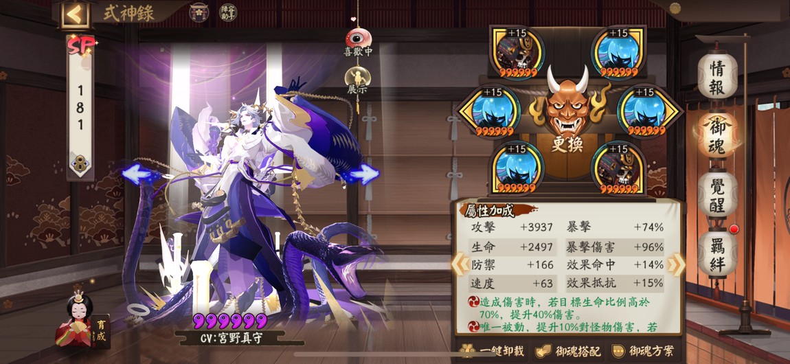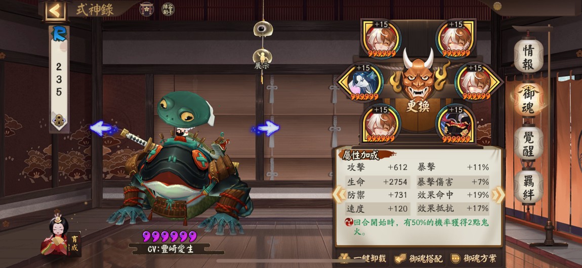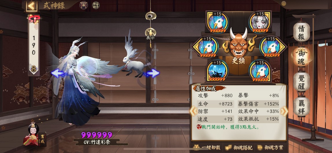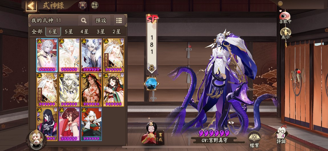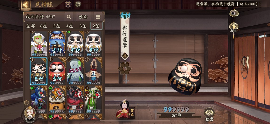 勾玉29343 金幣968萬 體力1.3萬 藍票171張