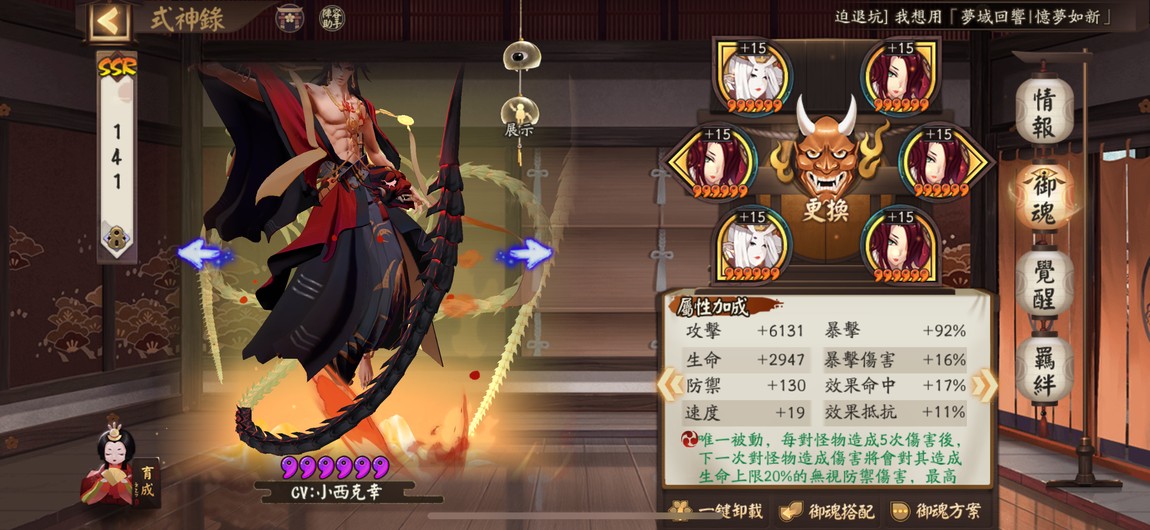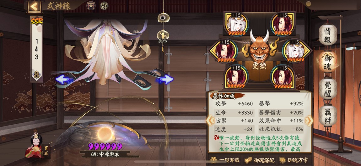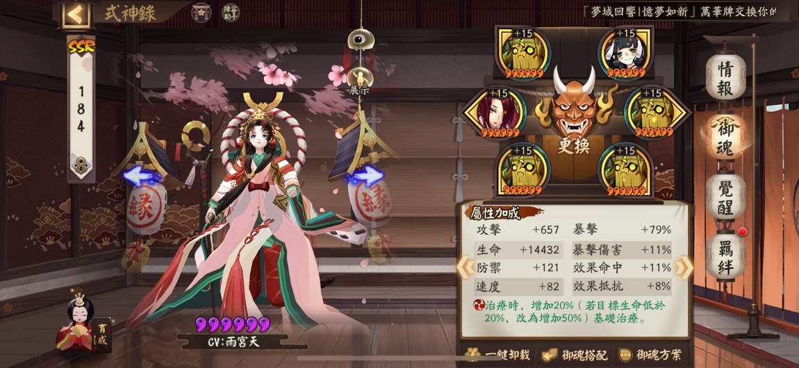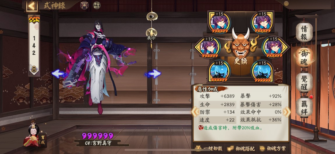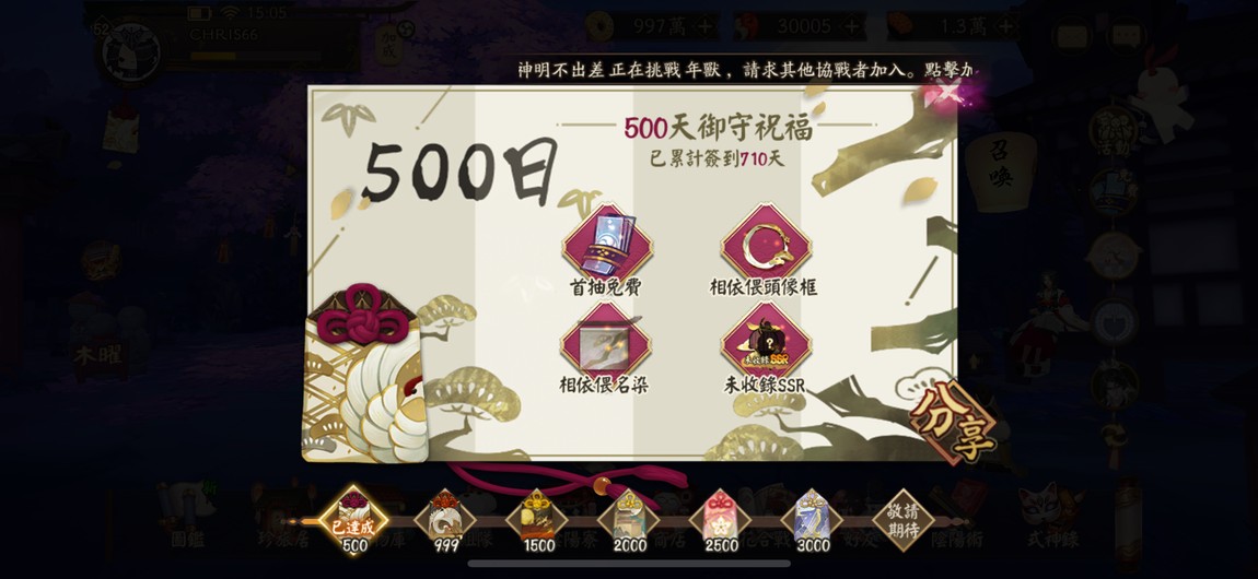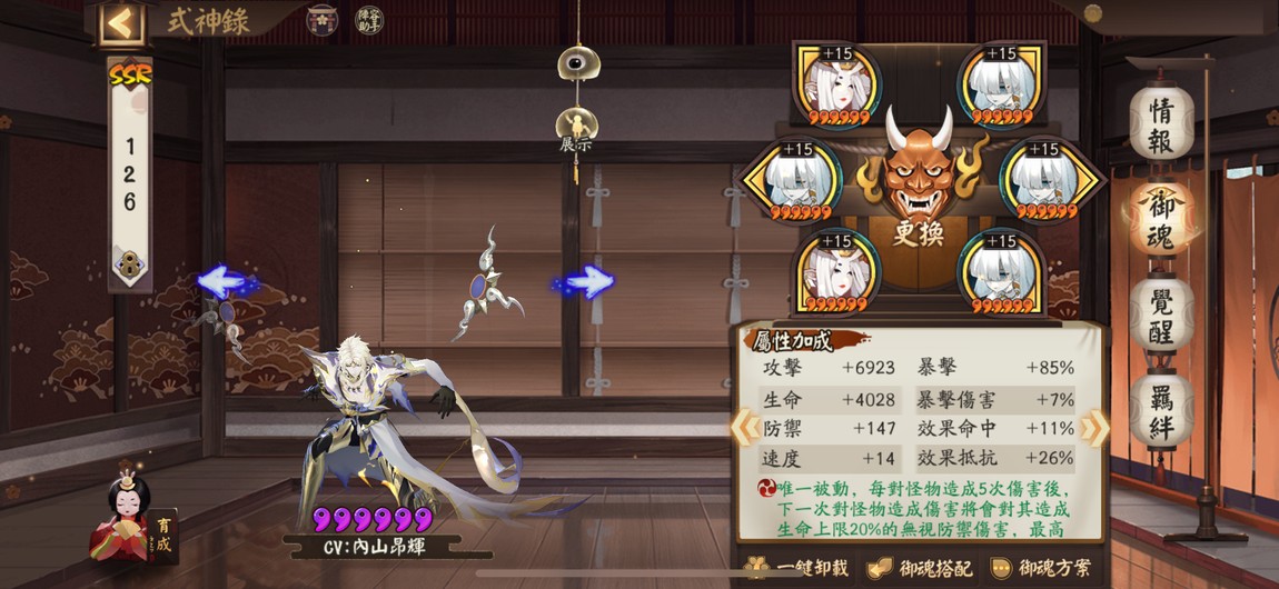 勾玉29343 金幣968萬 體力1.3萬 藍票171張