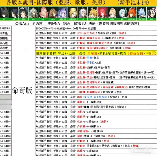 DLC拓展18 剛過新手教程等級8-12級必帶琉音+悠真+1-3隨機SSR(熱銷)=285T