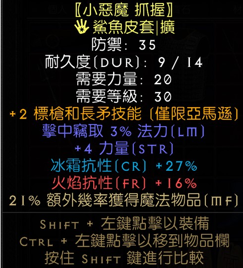 +2標 3%吸魔 27冰防 16火 21%打寶手套