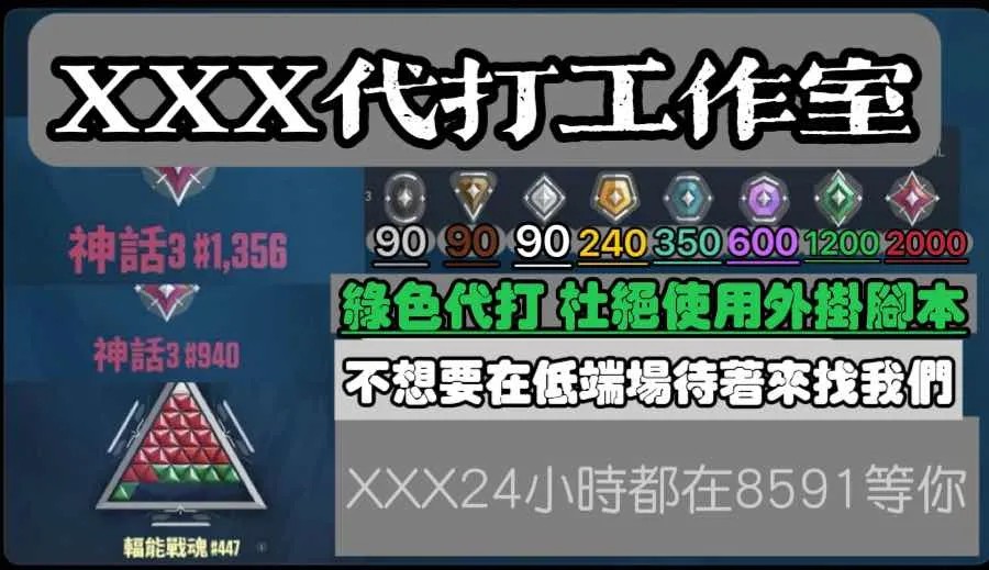 以上代打都可以做保密 決不透漏 想裝逼想要在朋友面前炫牌位炫吊飾 歡迎來尋找我們XXX仔代打 24小時守在8591為您服務