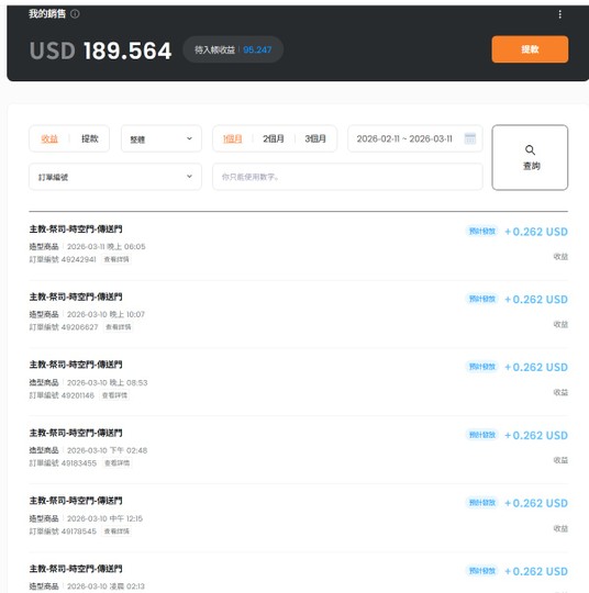 本人有再販售造型 創作者商店還有215美金可以提領 如圖