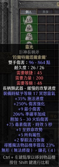 天梯S13 無形巨神長柄斧 靈光 17靈氣 250ED [術士軍臨]