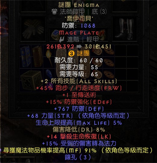 售整套高配術士裝(含謎團/無形靈光/術士火炬馬拉/近300%MF/125%高施)