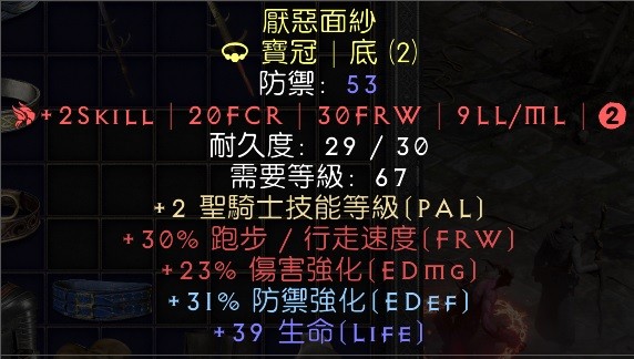 九九商店_+2聖騎30跑23傷害31防禦39生命_頭盔/寶冠