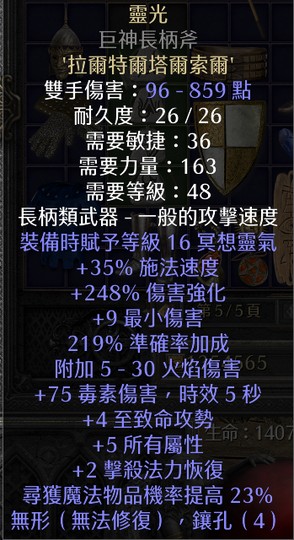 靈光無形巨神長柄斧 16等靈氣/248ED/+4致命攻勢 35高施