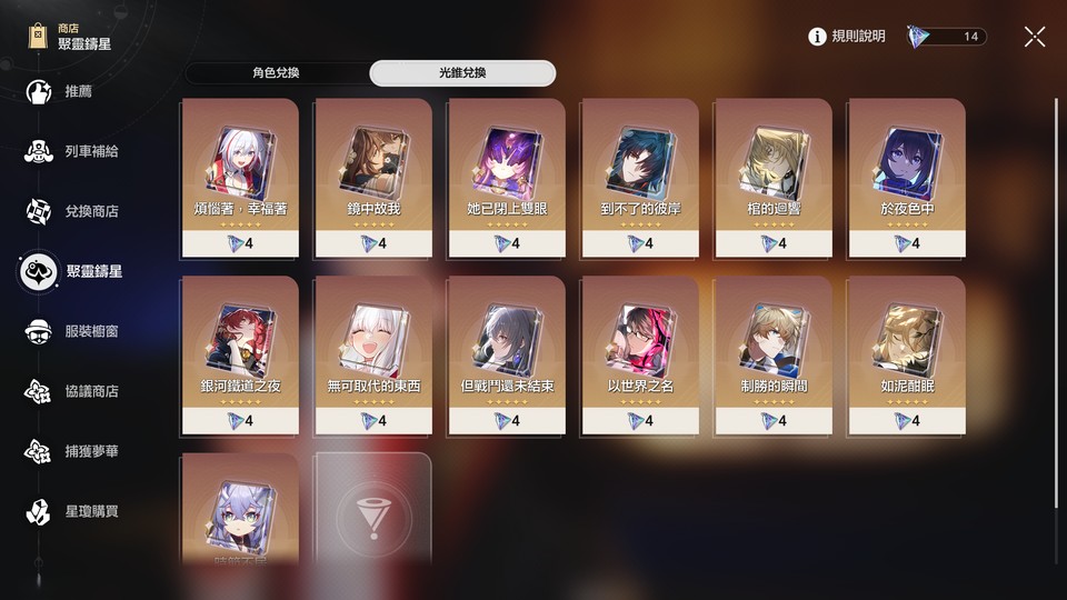 旅伴金靈*2/光錐碎憶*14 可兌換自己心儀角色星魂/光錐至少兩張以上