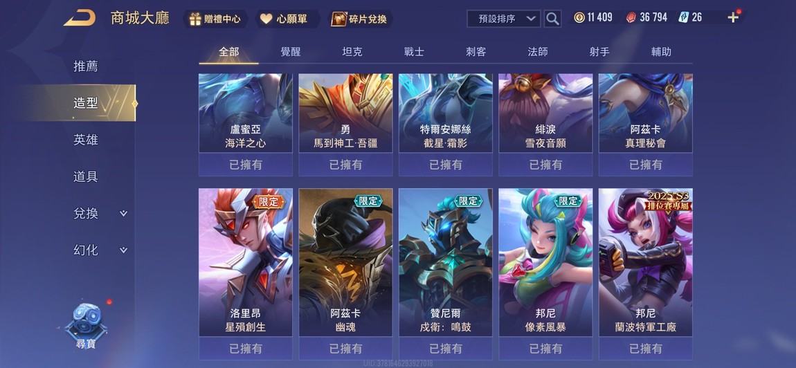 【Garena帳有綁定、鑽石、V9、99英、215造】售V9帳號 內容自看~