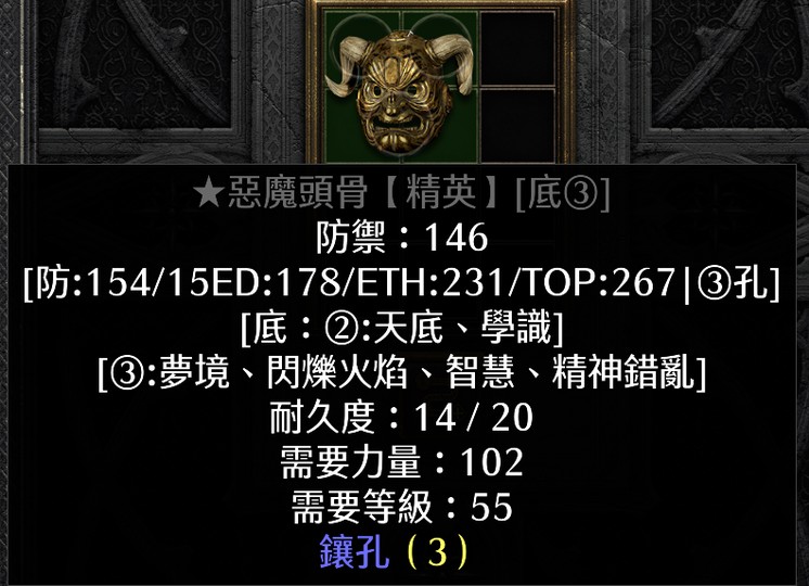 S13 術士天梯 惡魔頭骨 3S 146防 焰火底材