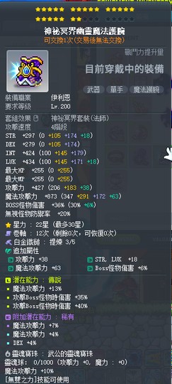 【神秘冥界幽靈魔法護腕】22星 13魔 75B 白3 均 14.3 武公 10 魔