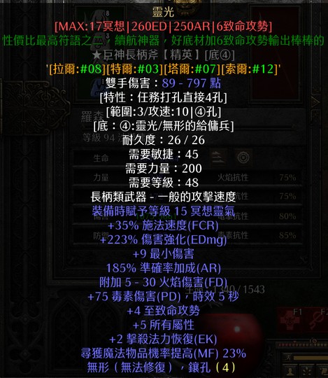 S13天梯賽季 術士君臨 傭兵 整套裝備 (剛毅 安頭 眼光)