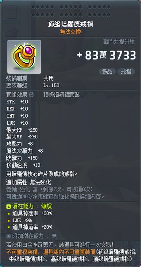 【頂級培羅德戒指含剪】1-雙掉9幸/9LUK雙道具掉落