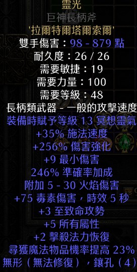 S13 DLC 新天梯 256ed近頂無形靈光巨神長柄斧 迴響術士好物