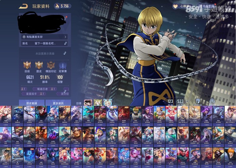 【Garena帳有綁定、戰場傳說、V7、123英、533造】500造