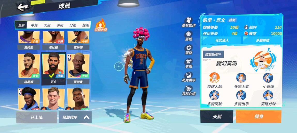 角色:歐文(4強化) 大班(2強化)雷納德 塔圖姆(2強化)詹姆斯 羅德曼 恩比德