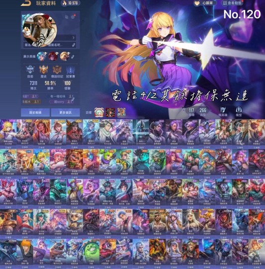 【Garena帳有綁定、先鋒傳說·天際、V8、117英、266造】特爾次元 鏡花水月 朽木白哉 月落星辰 奧特曼 星際 新年 鬼武者 聯動 連動