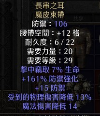 【S13天梯 術士軍臨】長串之耳 魔皮束帶 暗金裝 吸血 減傷一條腰帶搞定