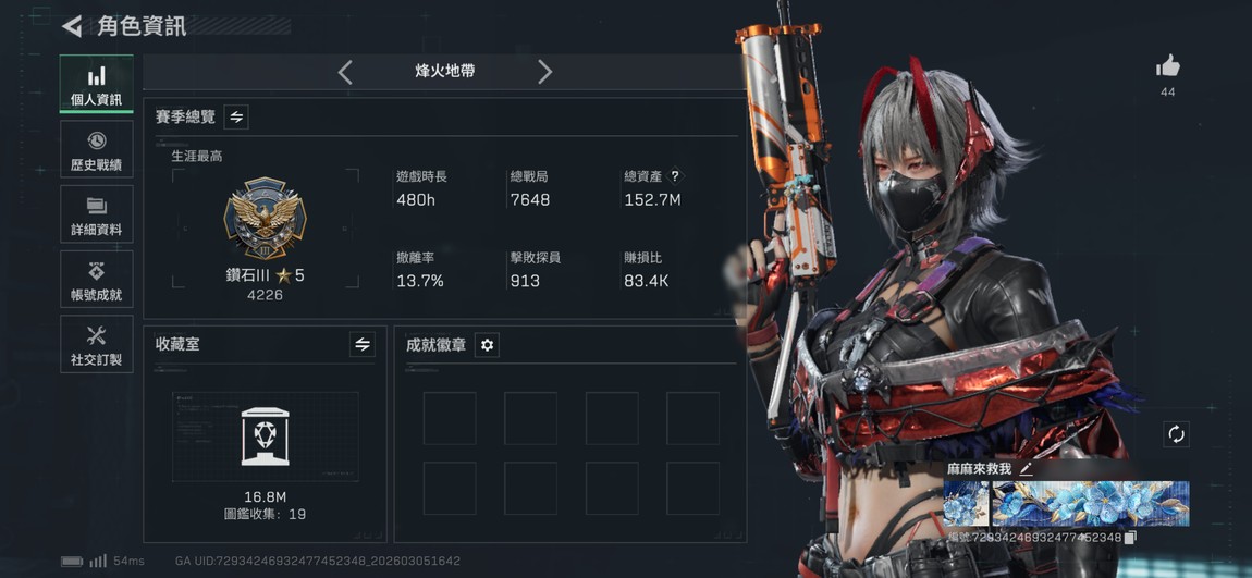 【Garena帳】資產1.5億多槍皮1紅1金皮3刀皮可改綁滿體力多特種包/卷通行證已開黑夜獵手吊飾