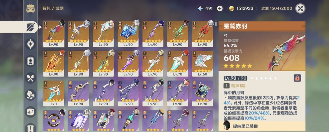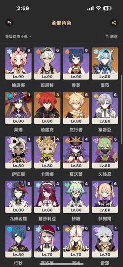 全部五星含命座+專武精煉共54進