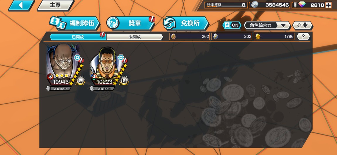 神開局五老星馬骨+黃猿20連勝稱號鑽石2810+碎片1790攻防體18%獎章都在
