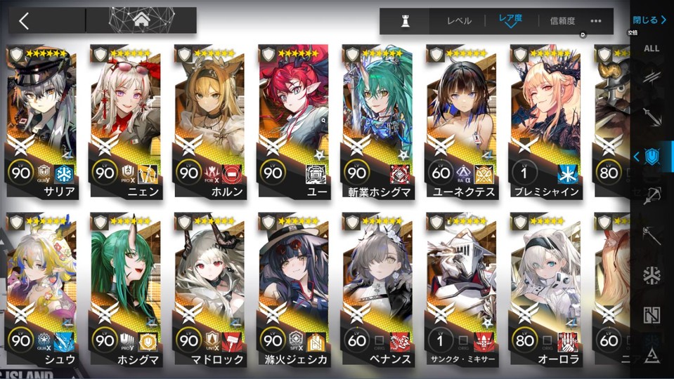 帳號資料如圖 , 信賴全滿(除新角色),mujica聯動皮膚都有,五星基建角都有練,因圖片因素幾乎只截六星角,有想看哪隻可以提問。