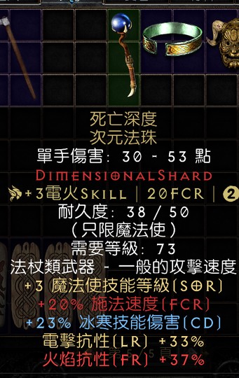 S13 法師 冰系神仗 次元深度 次元法珠 法杖 23%冰傷 37火炕 33電抗