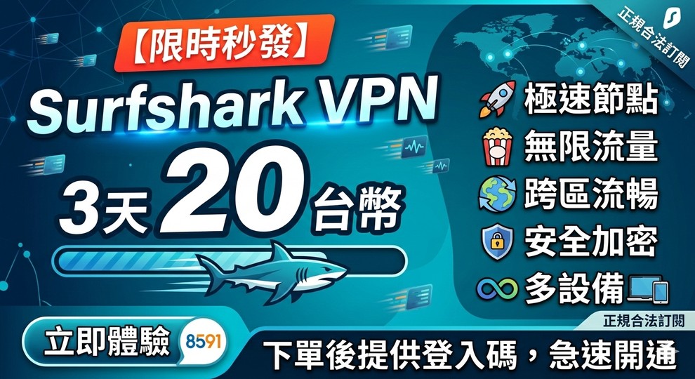 💰 單月極速體驗:$20 / 月 (一杯麥香的錢,享受3天無限安全上網)