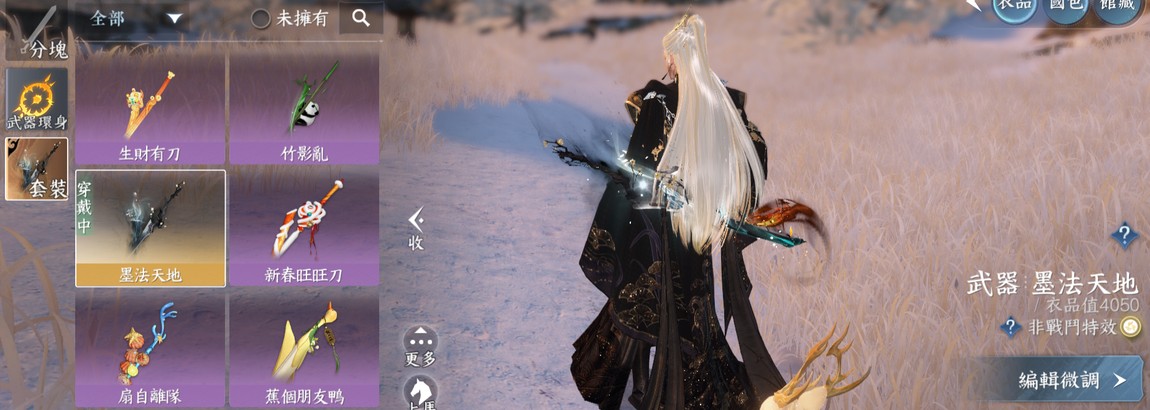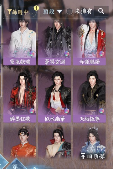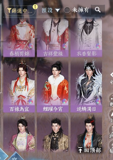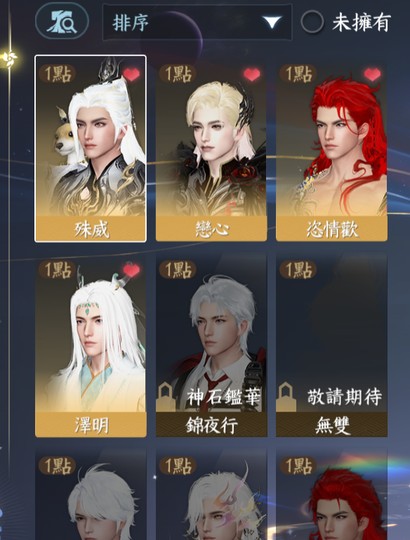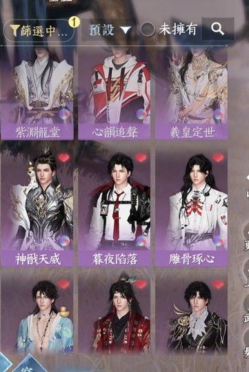 1.天賞及288:3限定天賞-恣情歡/戀心/殊威,常駐天賞:澤明/墨法天地(武器),288只有少數抽象的沒買,有買的都在圖裡,國色頭貼已拿三個(如圖)
