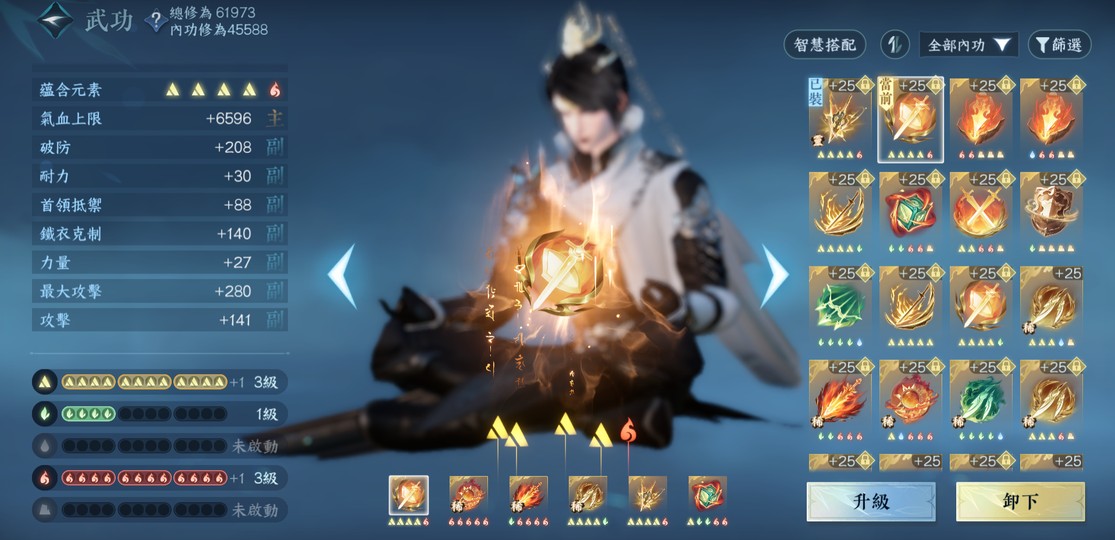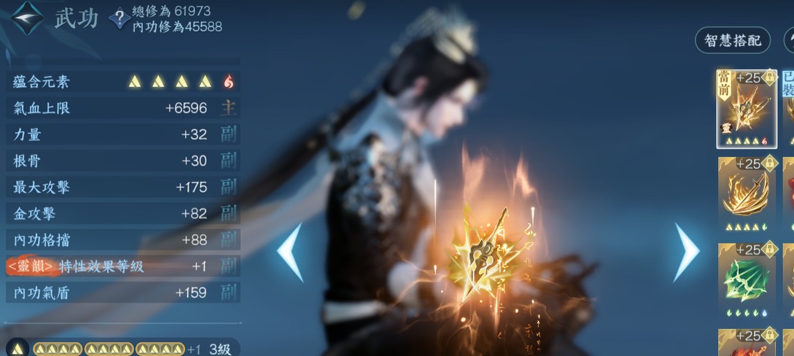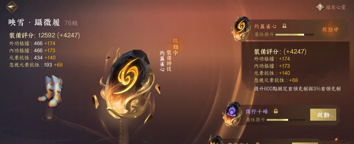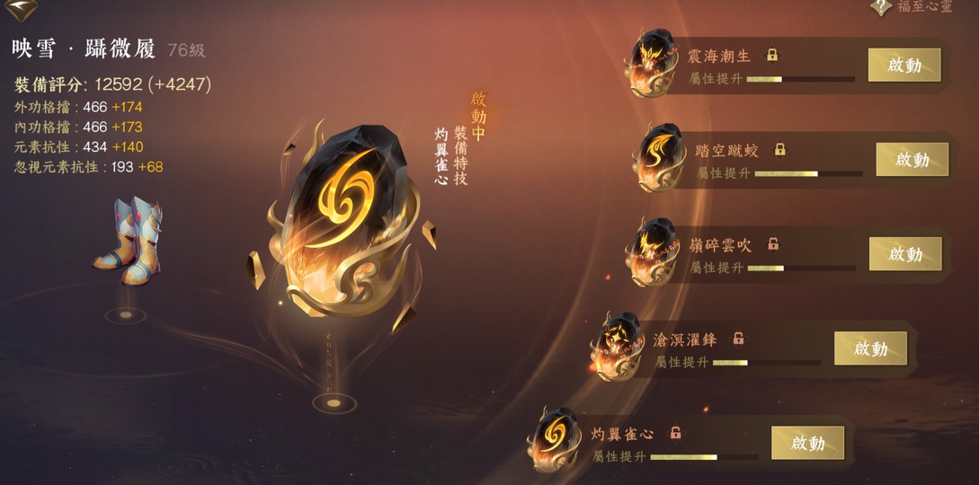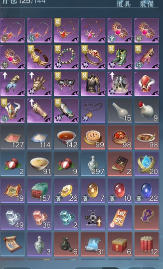2.裝備方面:靈韻斷金戈,尋俠帖還有400+,其他如圖