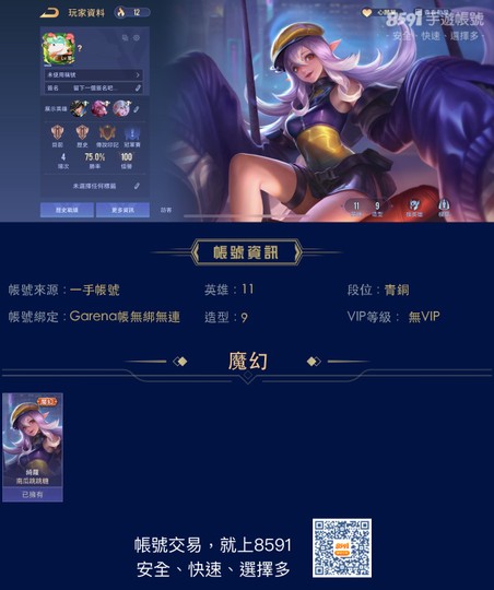 【Garena帳無綁無連、青銅、無VIP、11英、9造】綺蘿-南瓜跳跳糖簡帳