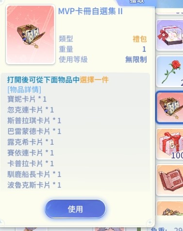 王卡:天波 、 魔鬼大烏賊 、黃金蟲、寶妮、蟻后(未解封)、還有一個MVP卡冊自選集II未開