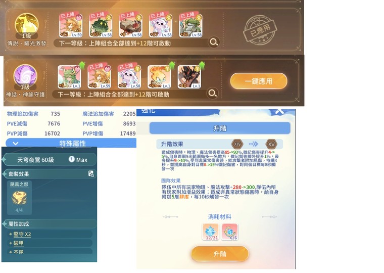 有2周年至高天、3週年整套攻裝、3.5周年整套攻裝