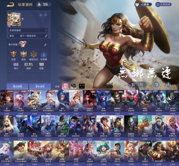【Garena帳無綁無連、黃金、無VIP、51英、51造】✨低排位歷史戰場、女超人、呂布、菫紅蓮、納克戰神、蘭鐸綠帽、星葵公主✨