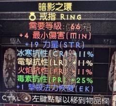 戒指 4小傷19力量11全抗25毒抗1擊殺回魔
