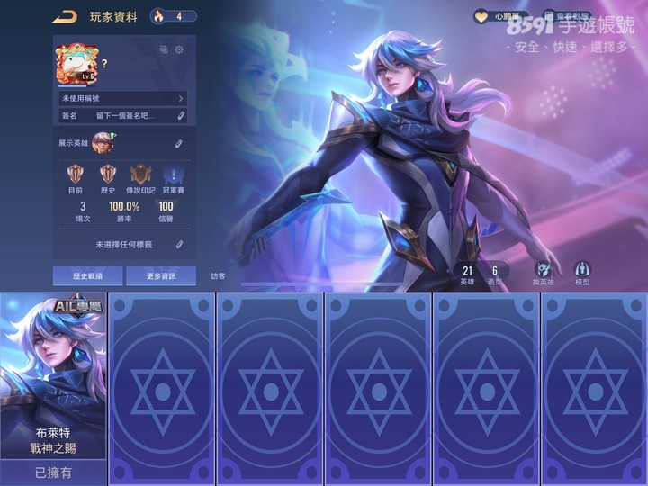 【Garena帳無綁無連、青銅、無VIP、21英、6造】布萊特-戰神之賜簡帳