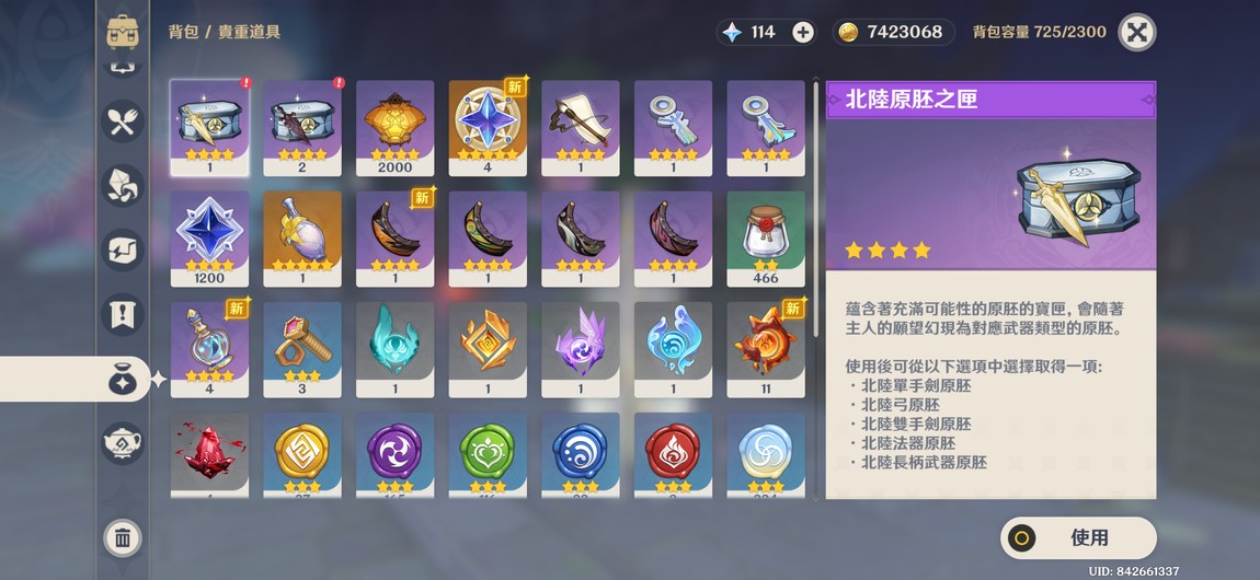 物品種類: 帳號