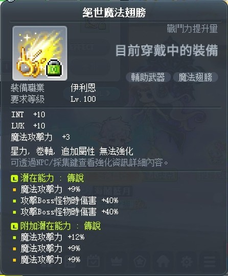 【絕世魔法翅膀】絕世魔法翅膀 伊利恩副武器 9%魔+80%B傷 附加三魔30% 可馬戲團/日蝕