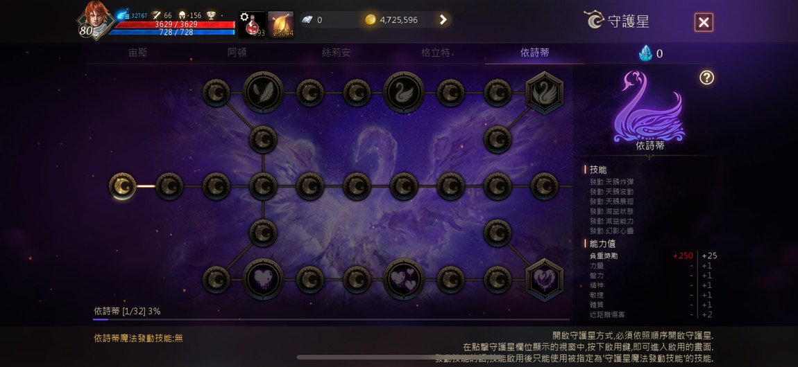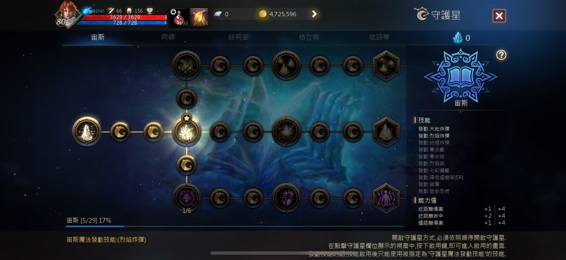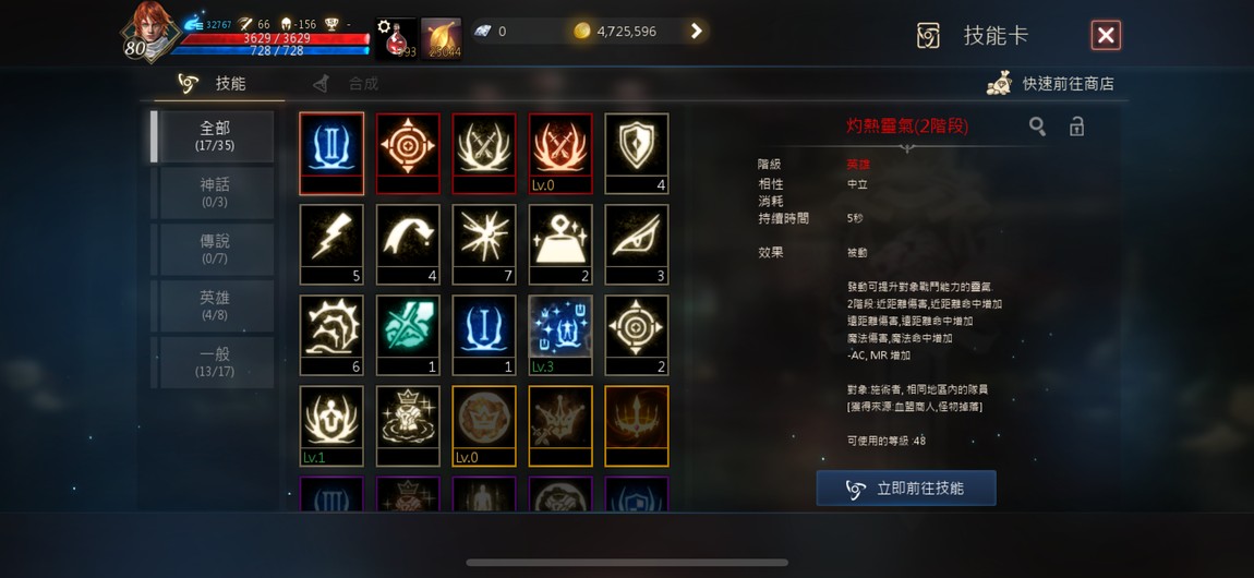 灼熱靈氣(2階段)、精準目標(大師)、勇猛意志、勇猛意志(大師)
