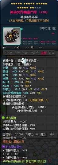 主潛能:70%BOSS10%物攻(強力主流主潛能)
